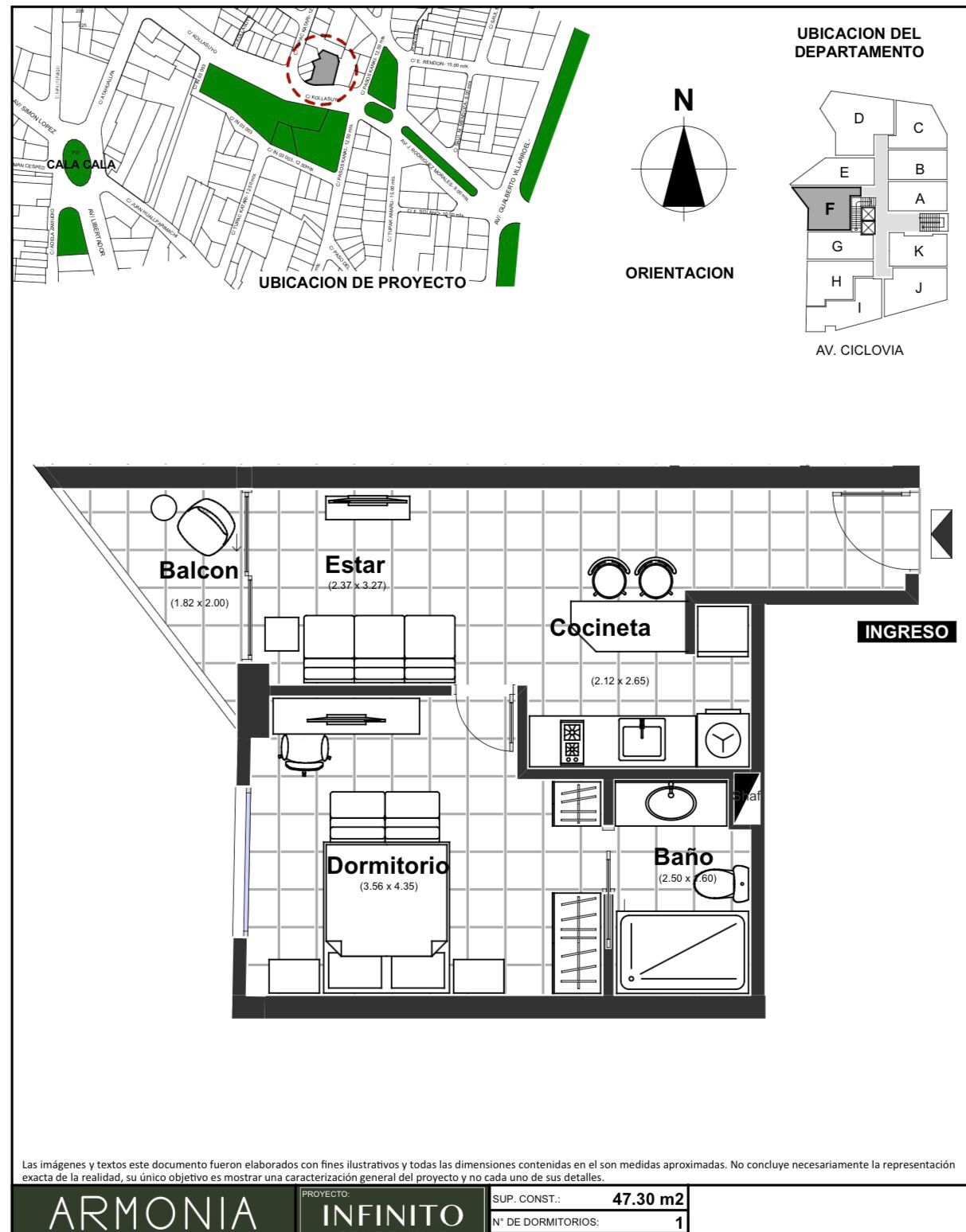 1 dormitorio 47,30 M2